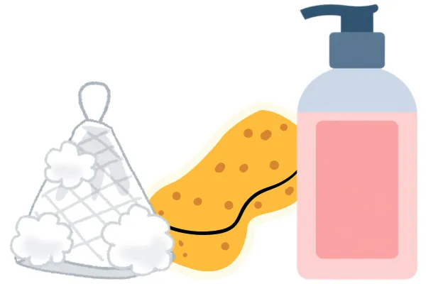- 背中:皮脂が多い。おしり側から前へ移動しながらしっかり洗う
